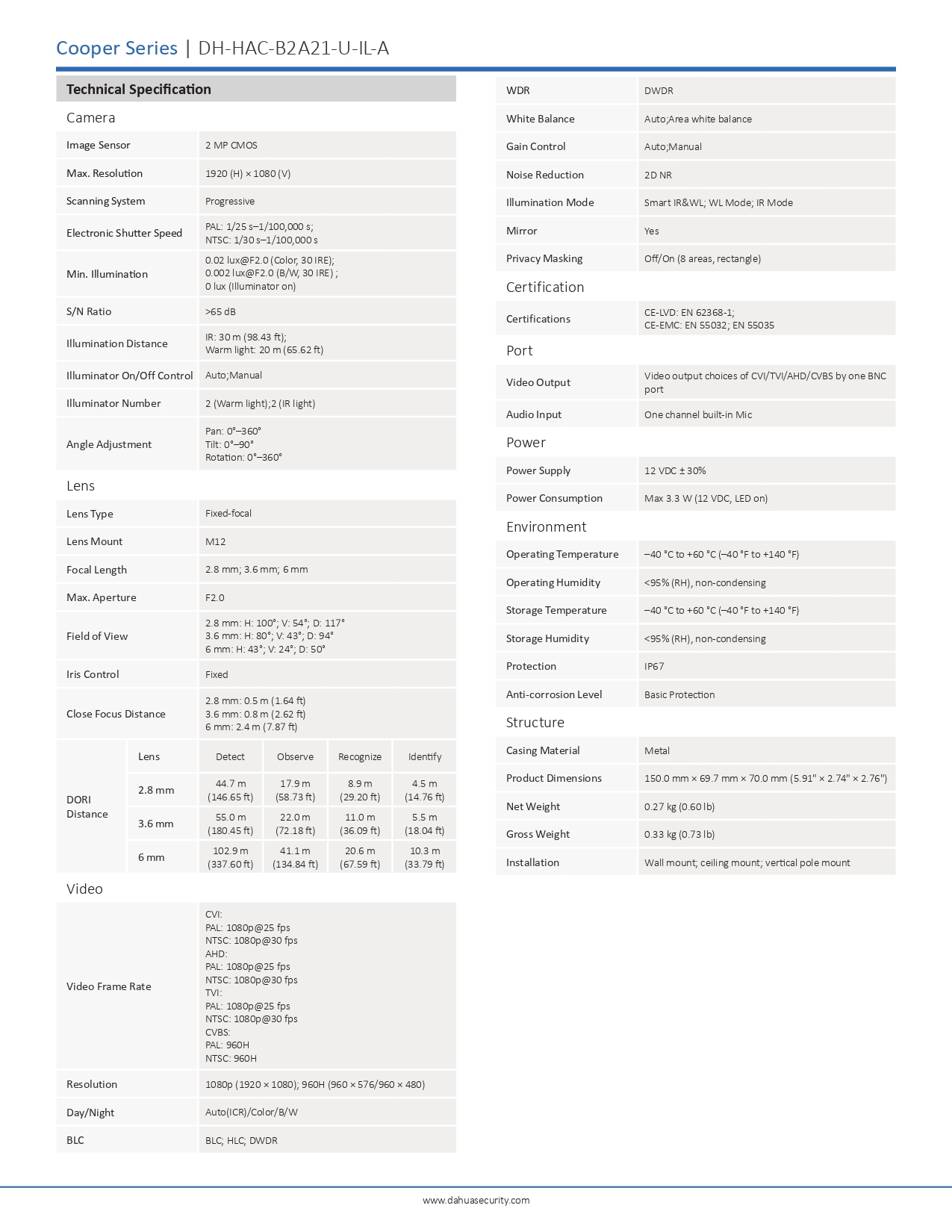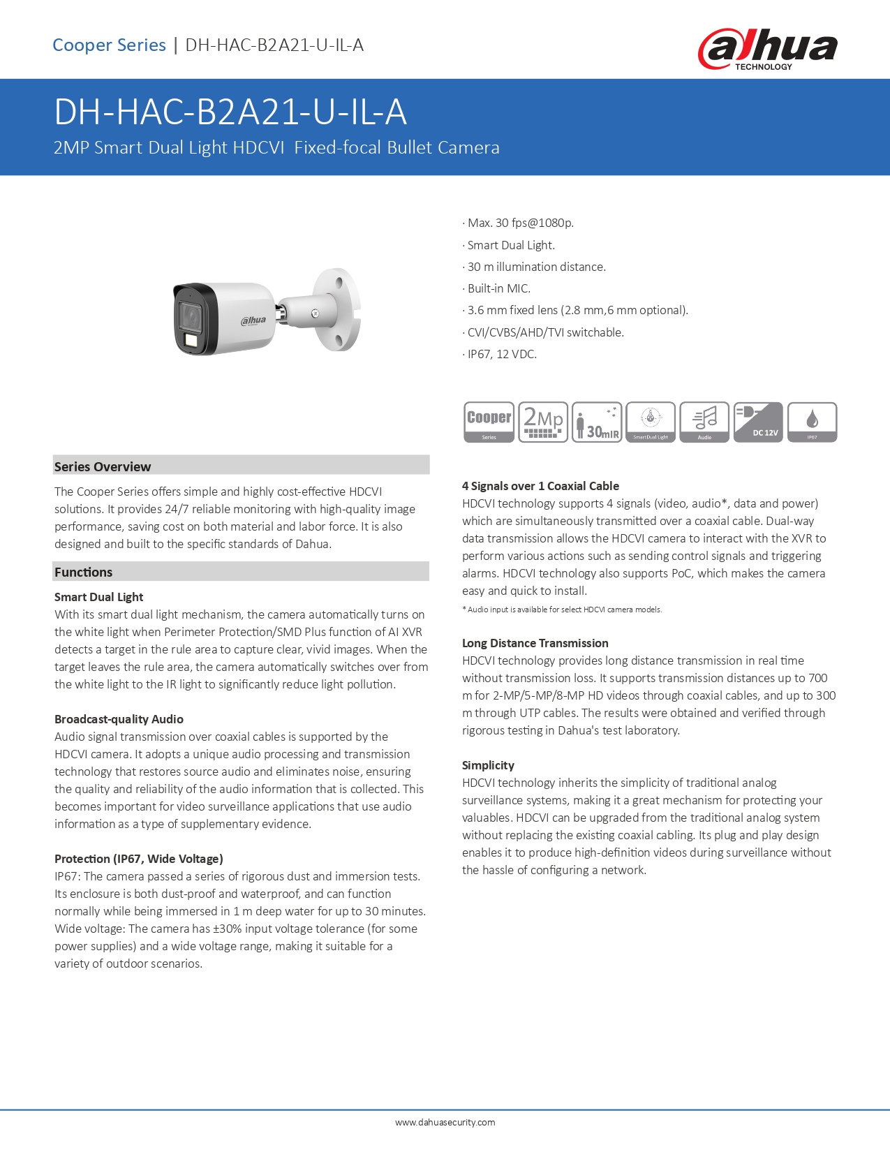 CAMERA DAHUA 2MP HD TUBE METALLIQUE SMART HYBRID MICRO