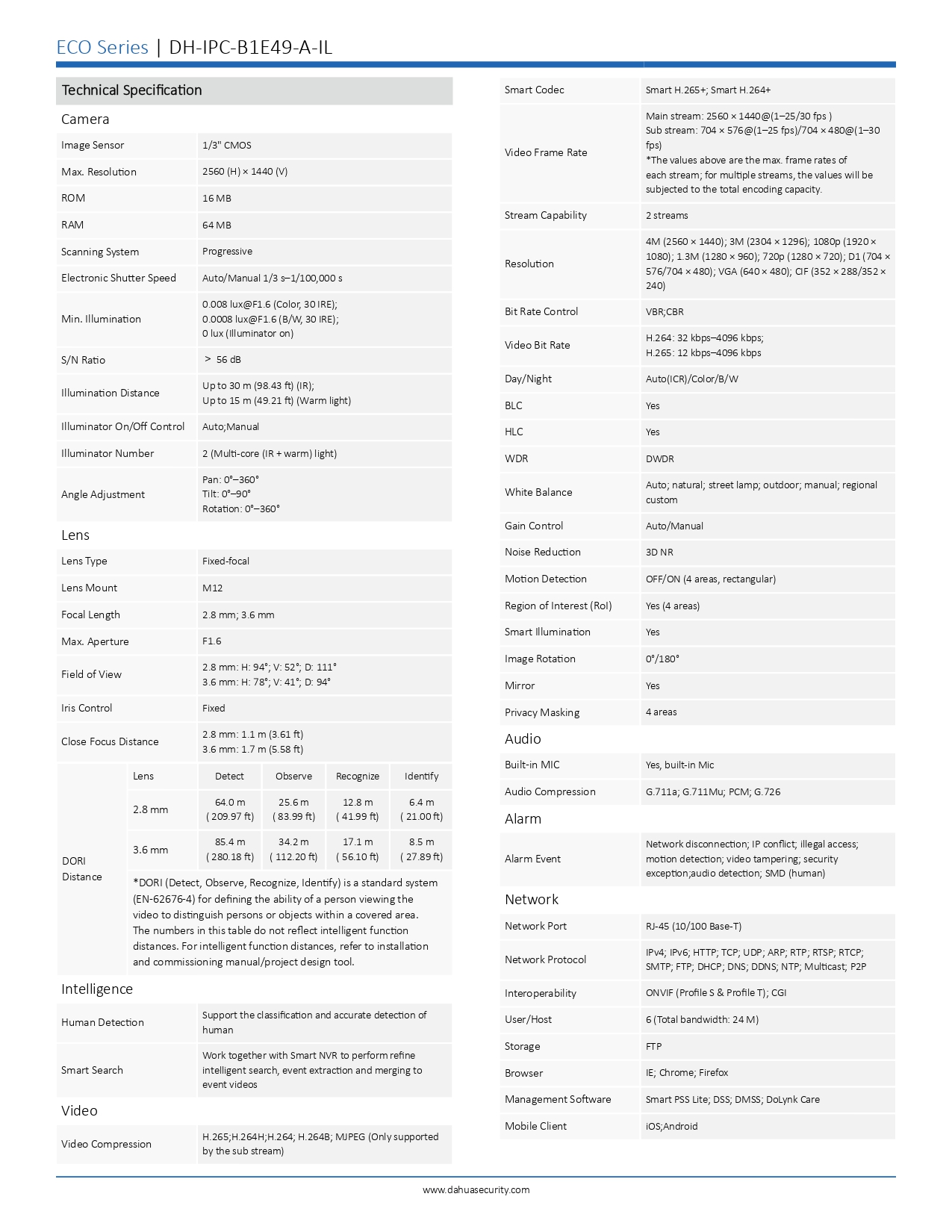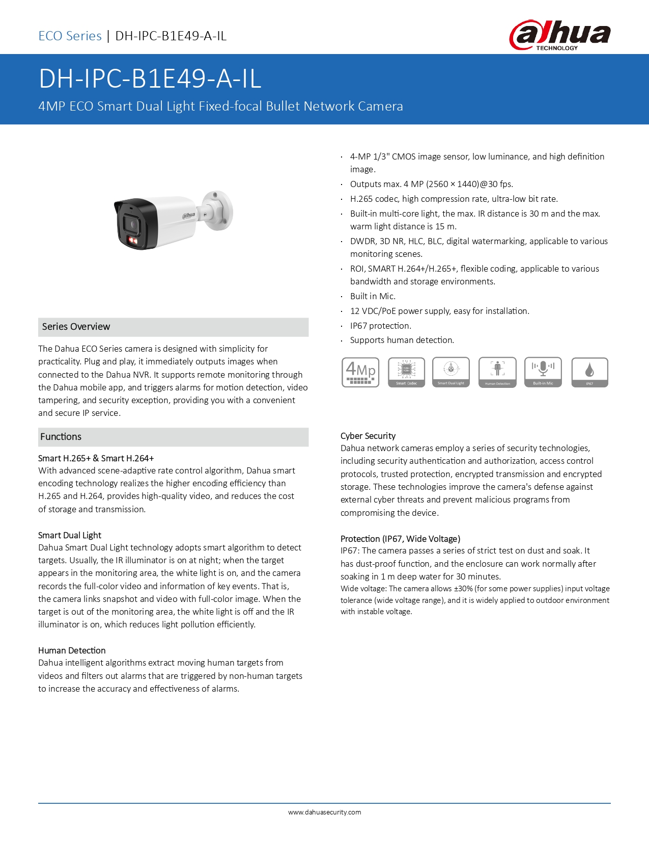CAMERA IP DAHUA TUBE 4MP DUAL LIGHT 2.8MM