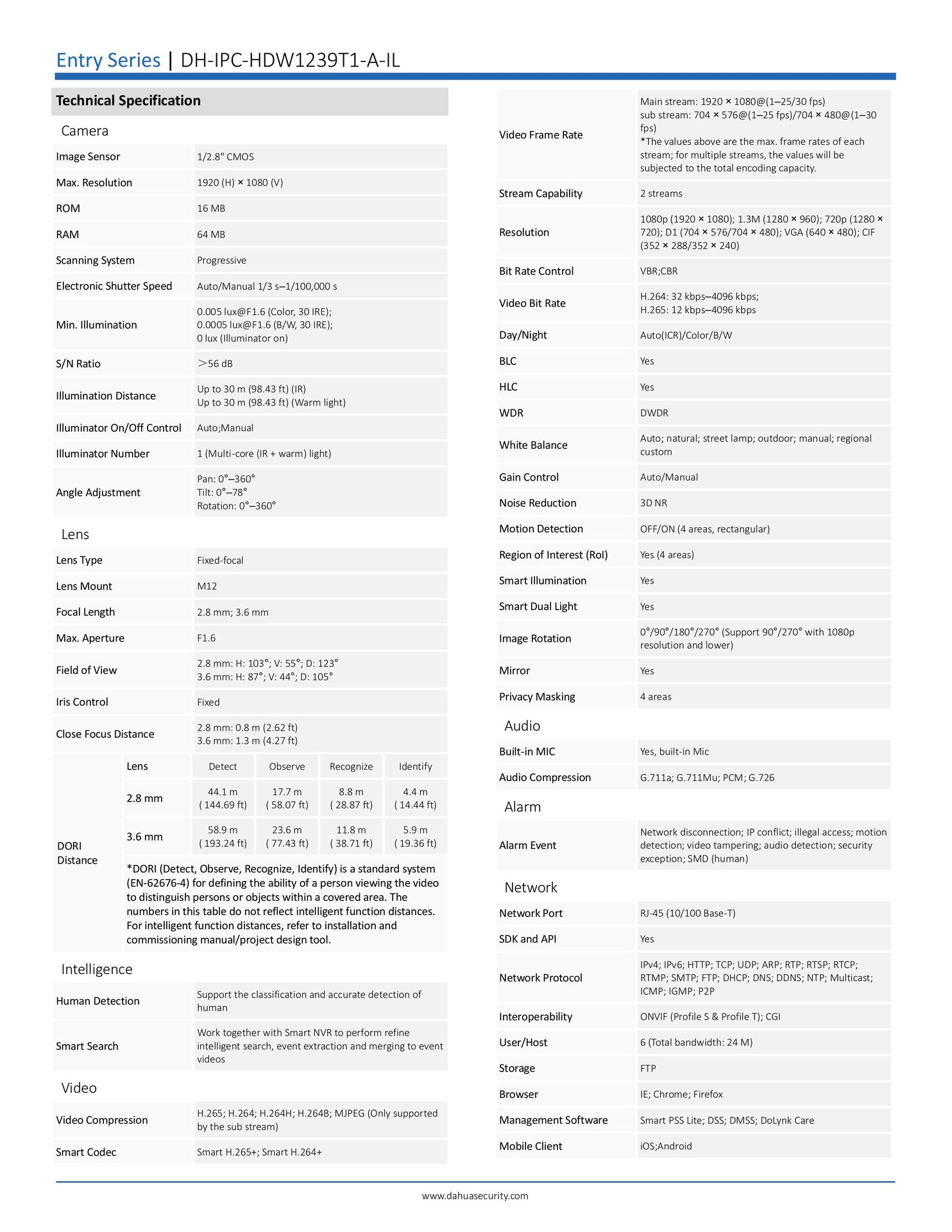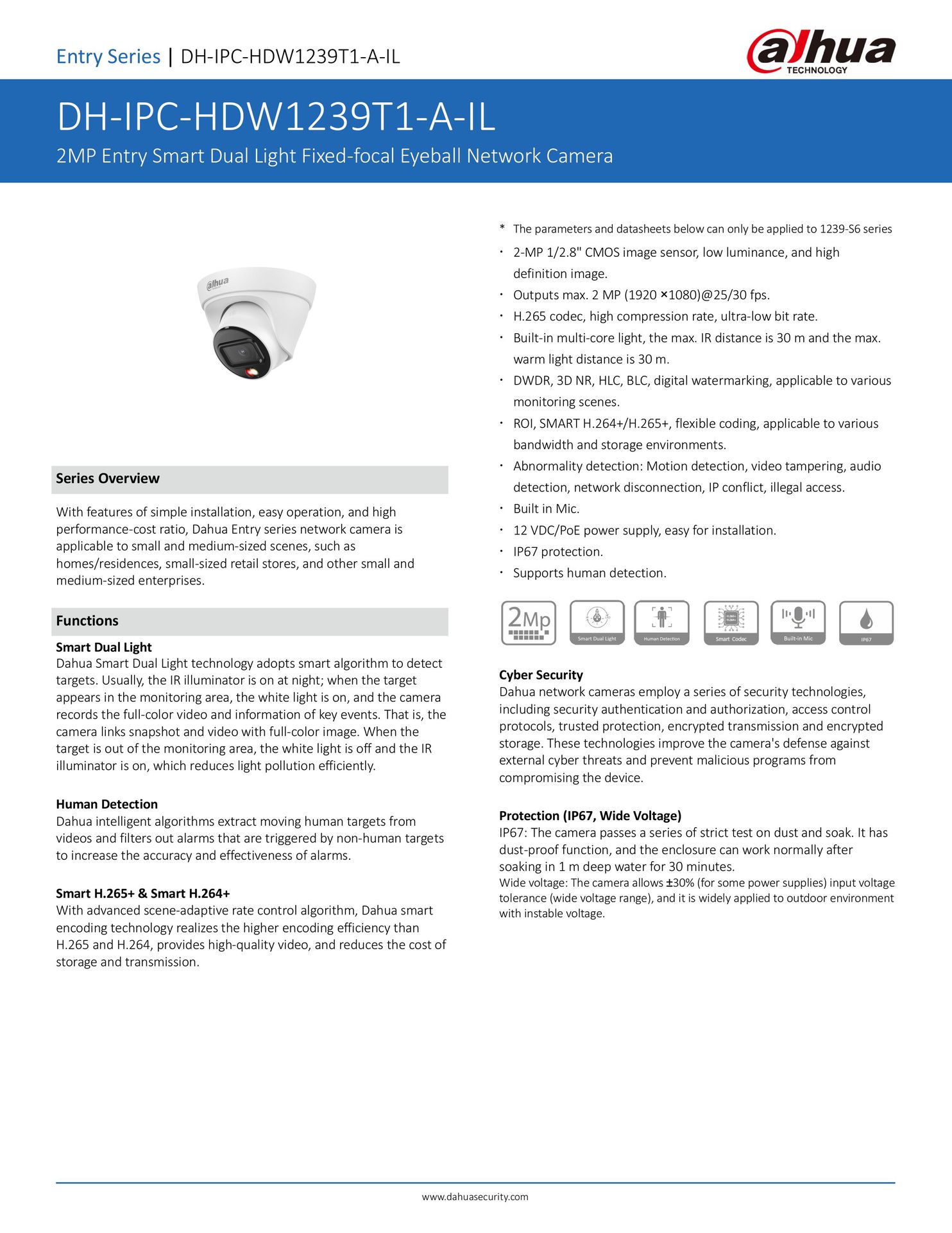CAMERA DAHUA DOME IP 2MP SMART DUAL
