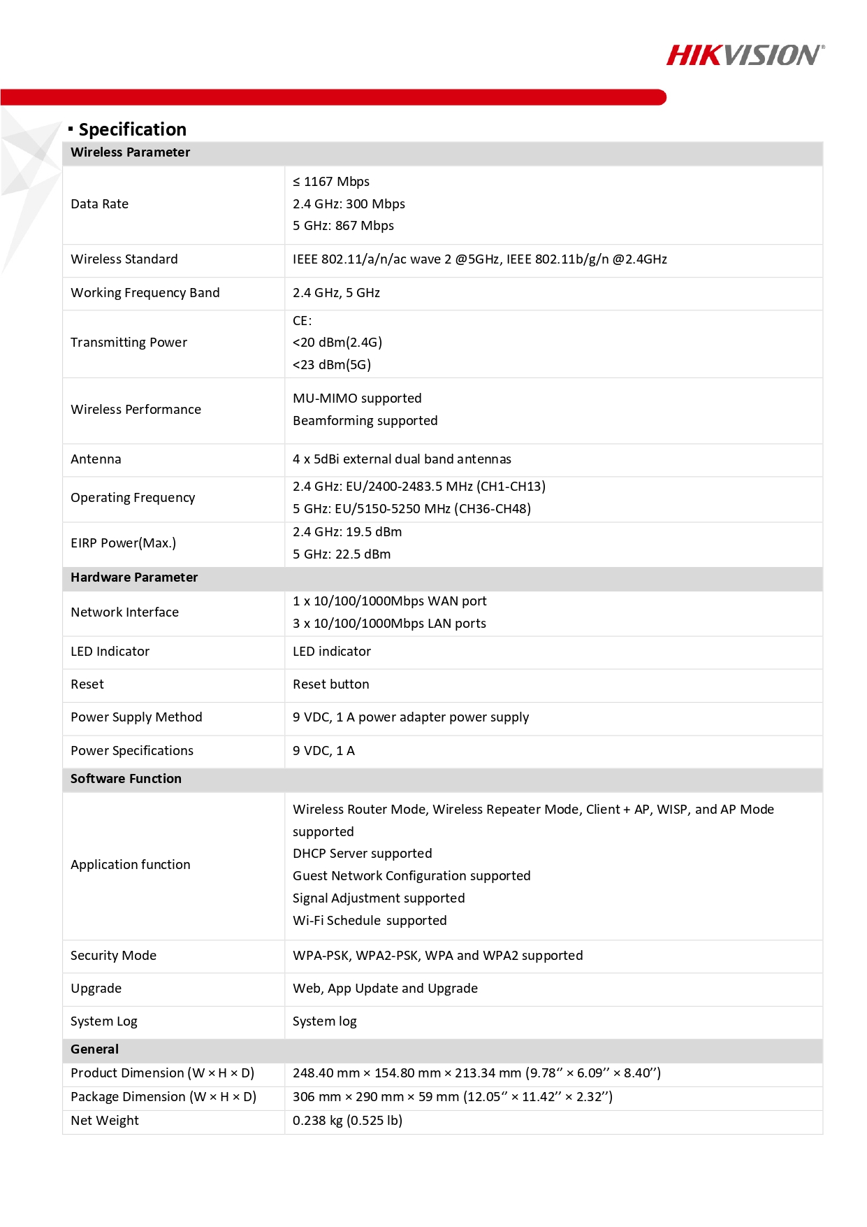 POINT D'ACCES Sans Fil à port Gigabit AC1200 Hikvision