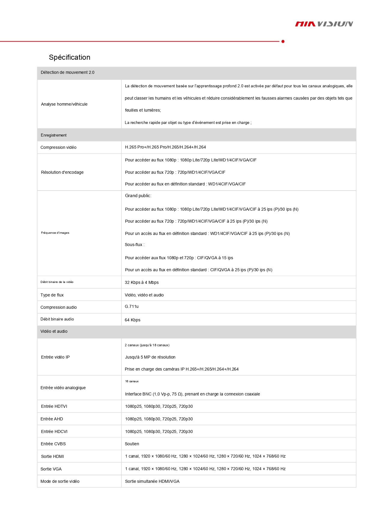 détection de mouvement intelligente basée sur l’apprentissage profond, réduit les fausses alertes, supporte l’audio via coaxial et permet la visualisation et la lecture fluide des enregistrements sur HDMI/VGA.