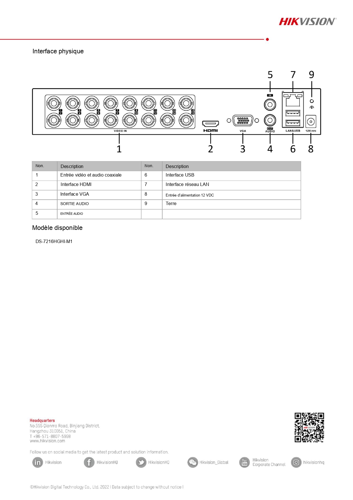 XVR 16 canaux qui prend en charge les caméras analogiques (HDTVI/AHD/CVI/CVBS) et jusqu’à