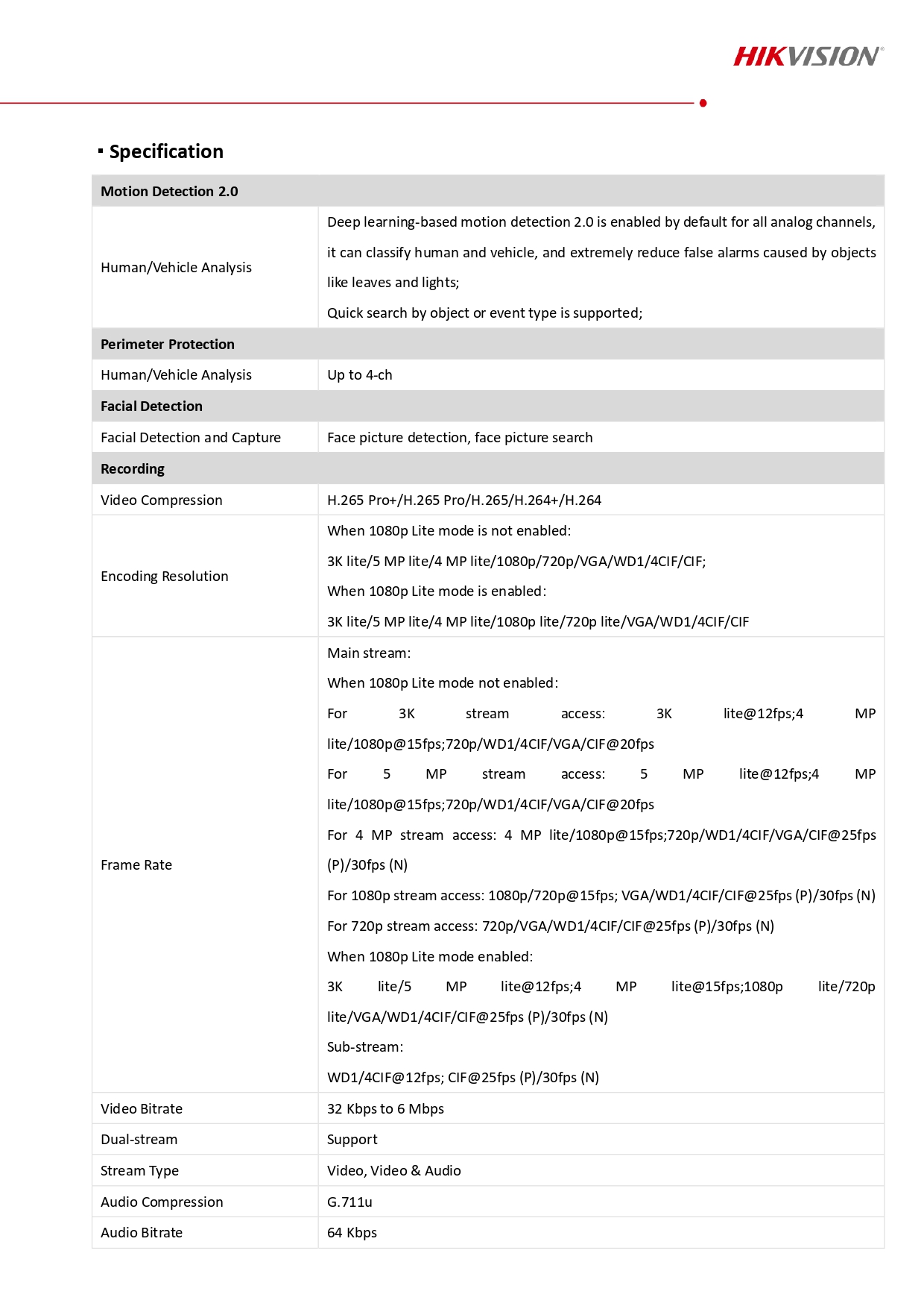 compression vidéo H.265 Pro+, compatible avec les signaux analogiques (HDTVI/AHD/CVI/CVBS) et jusqu’à