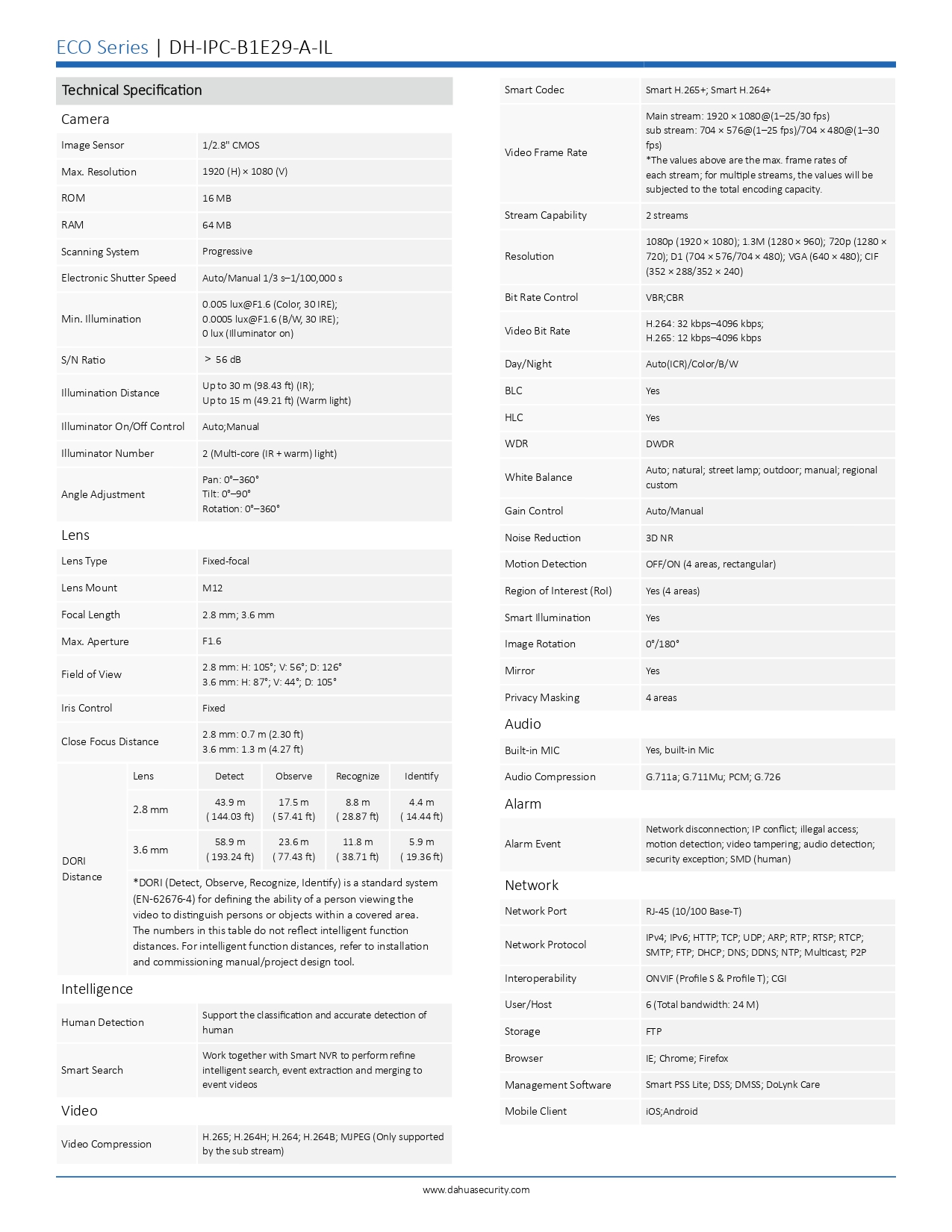 CAMERA DAHUA IP 2MP TUBE DUAL LIGHT 2.8MM