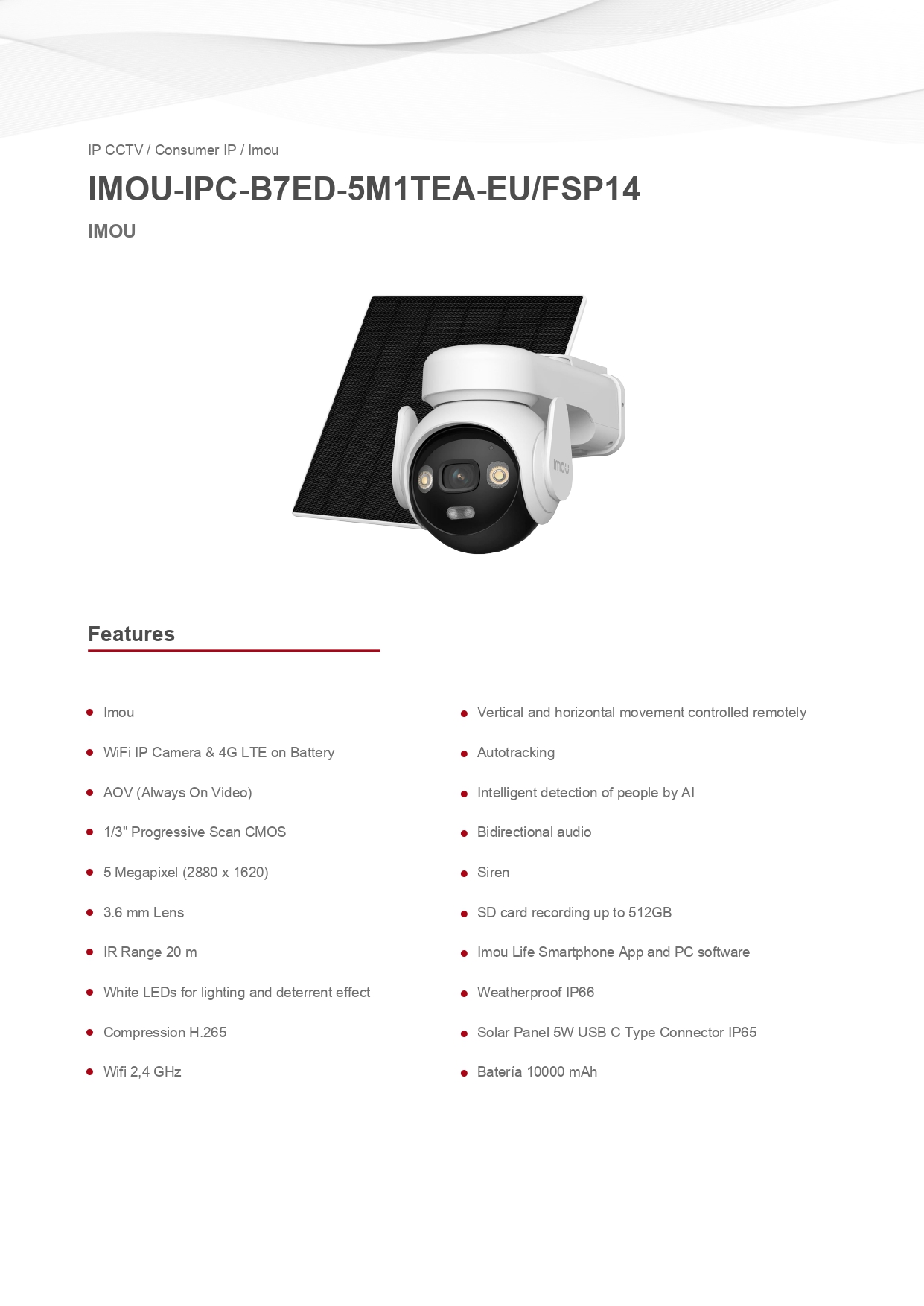 CAMERA IMOU SOLAIRE 4G+WIFI 5MP ROTATIF