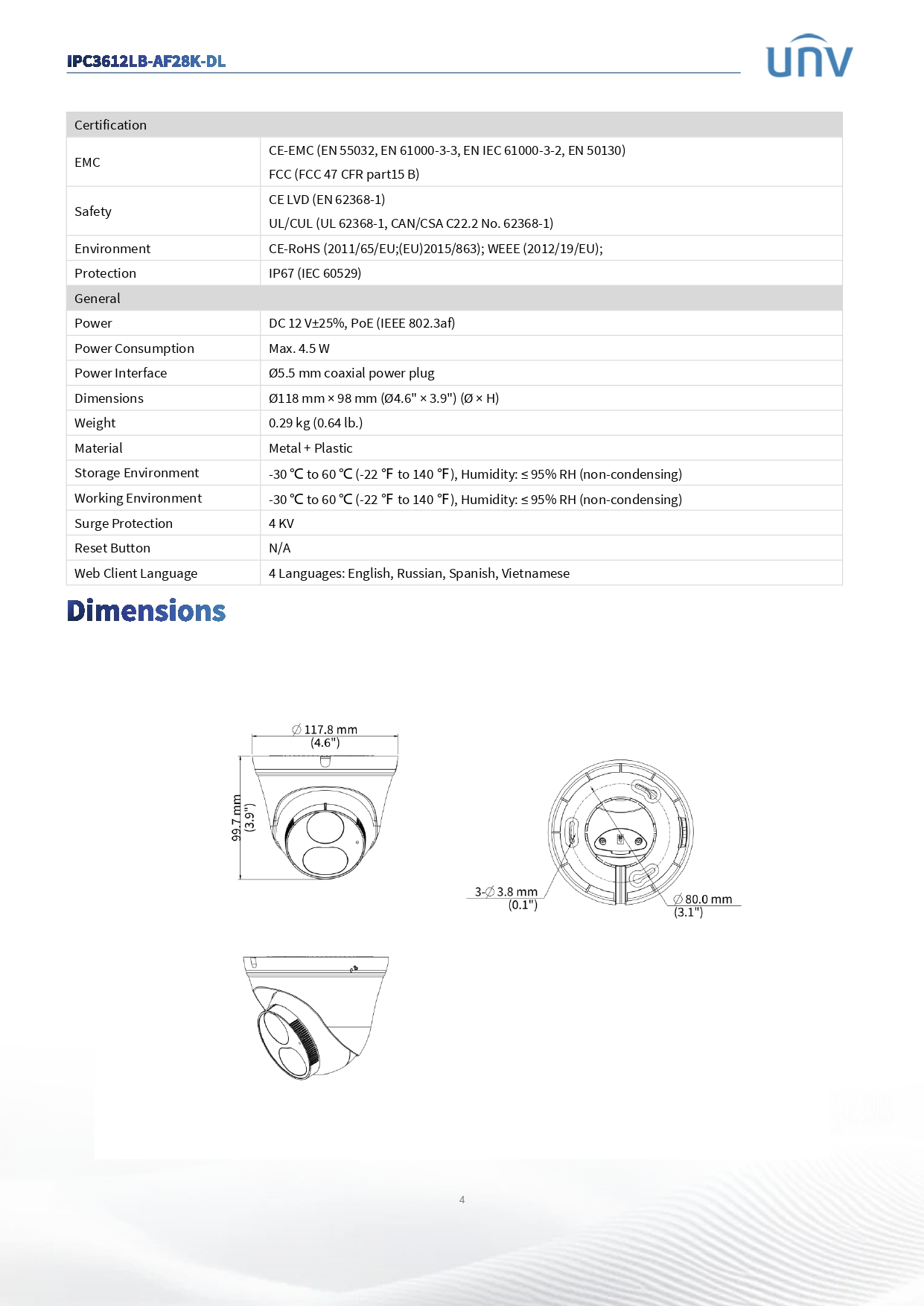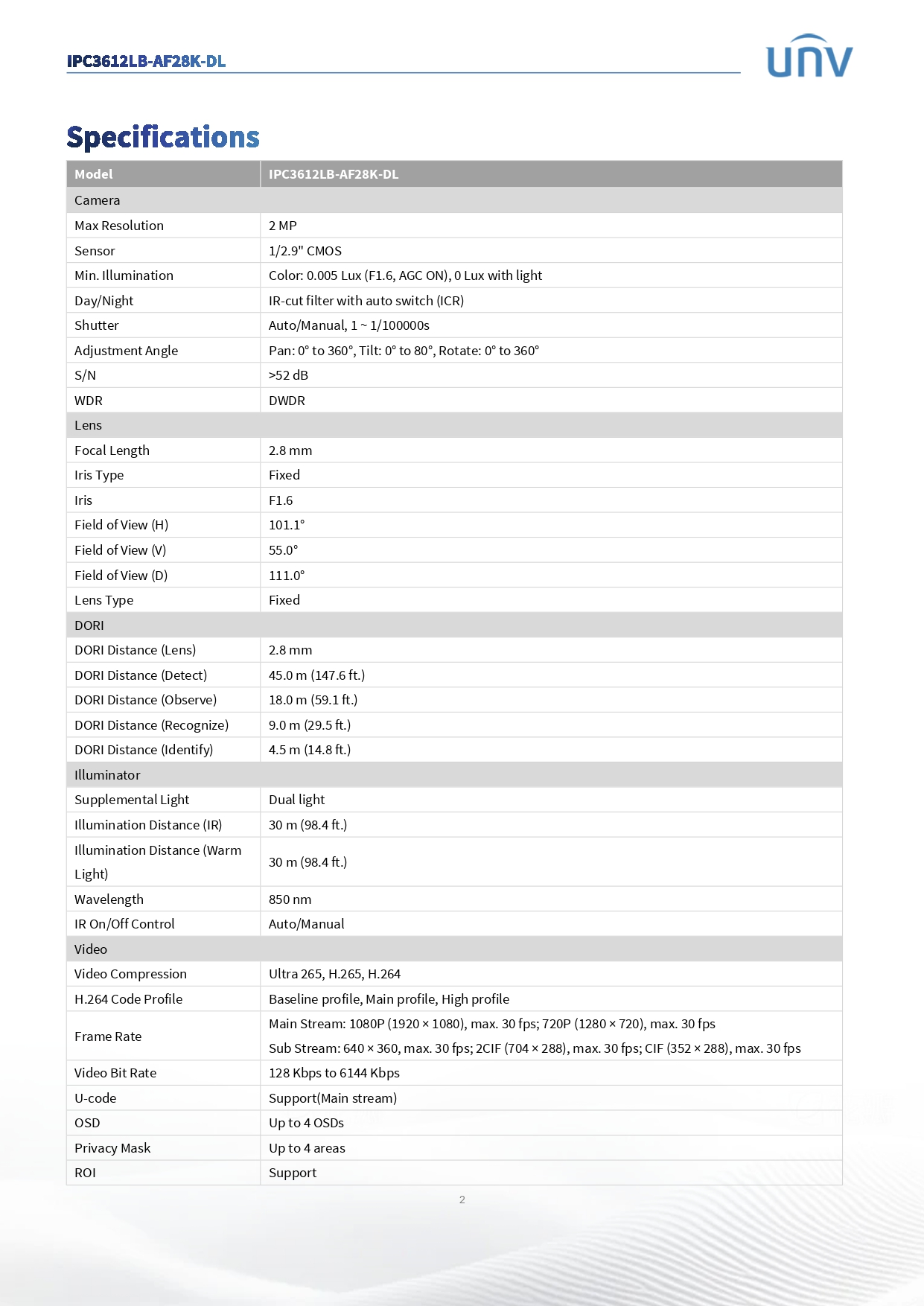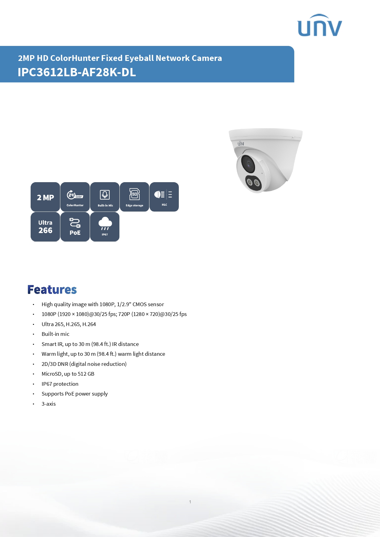CAMERA UNV IP DOME 2MP SMART DUAL LIGHT 30M MICRO