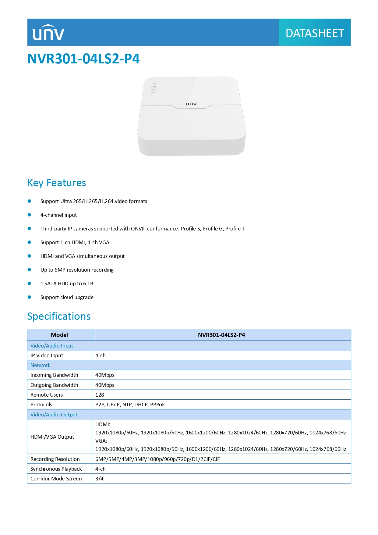 NVR301-04LS2-P4 est un enregistreur vidéo réseau