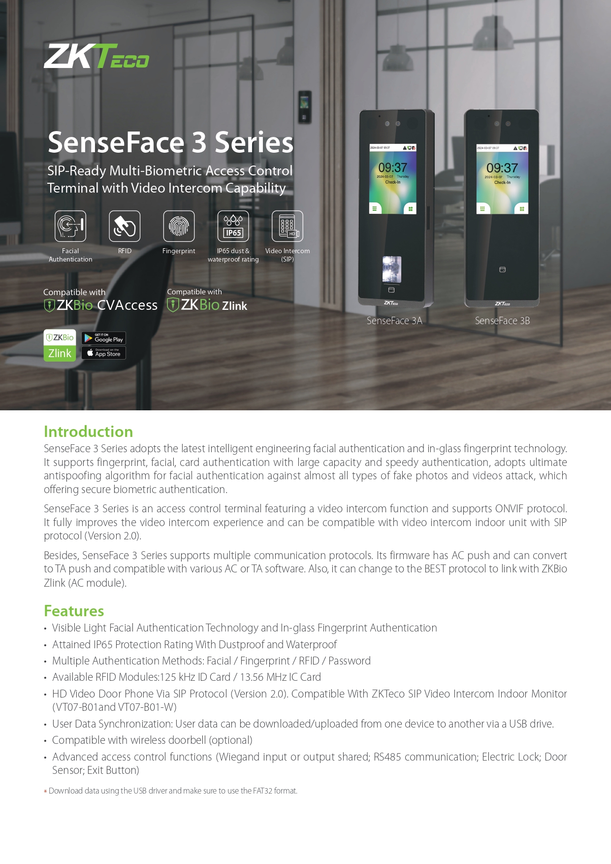 POINTEUSE CONTROL D'ACCES ZKT SENSE FACE 3A
